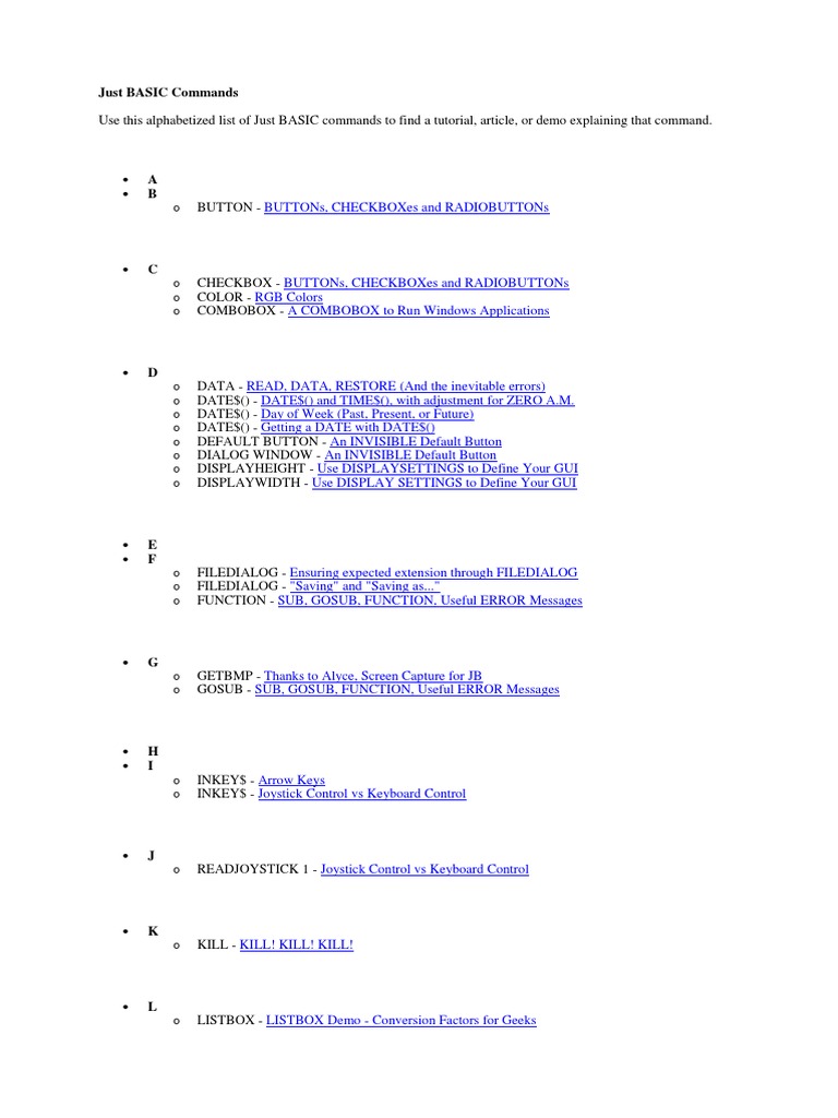 But they can all be some, or moving them to your own computer). Not all of these are actually part of unix itself, and you may not find them on all unix machines. 24 rows · basic computer language commands. Let us take a brief. The basic language consists of one or two dozen commands, depending on the version used.